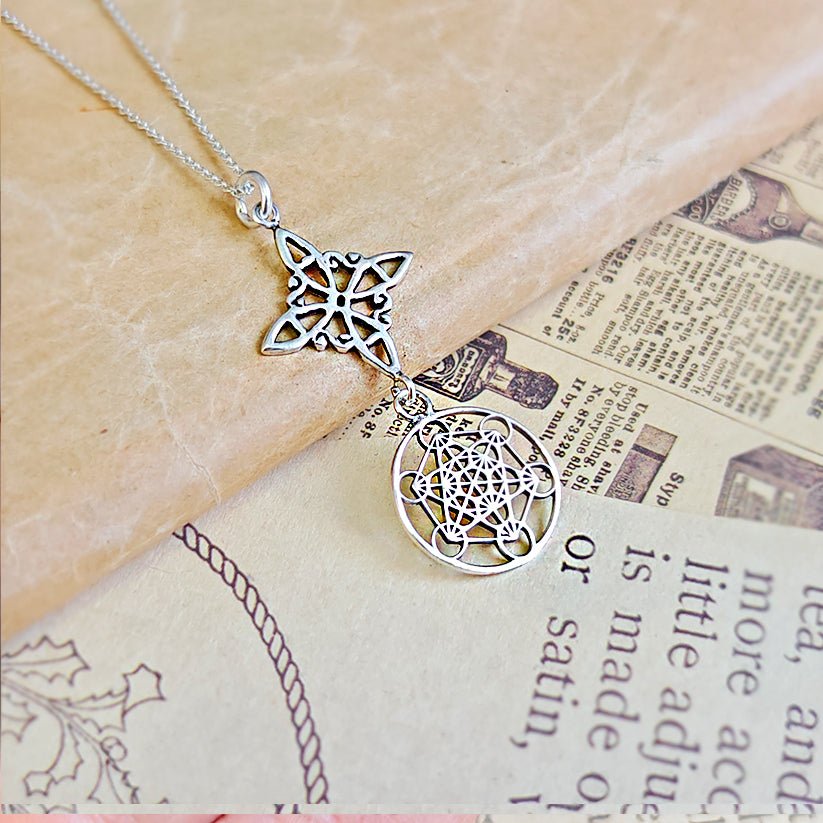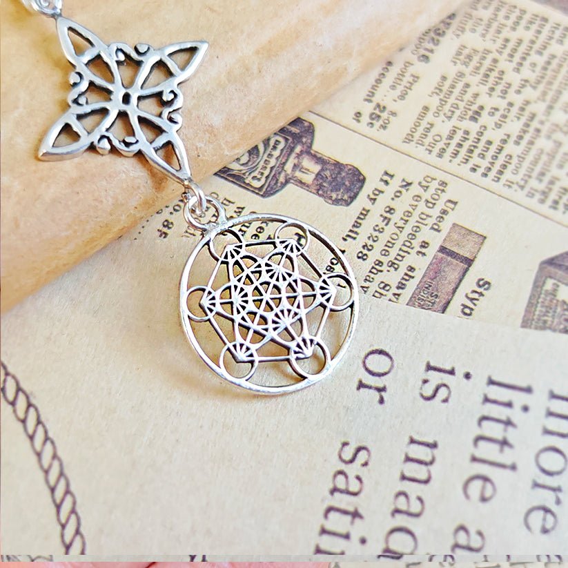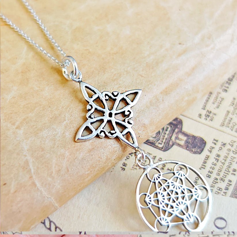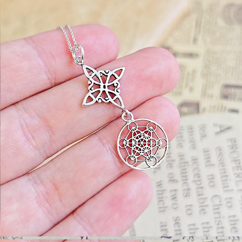 Colgante Nudo de Bruja & Cubo de Metatrón - Plata de Ley 925