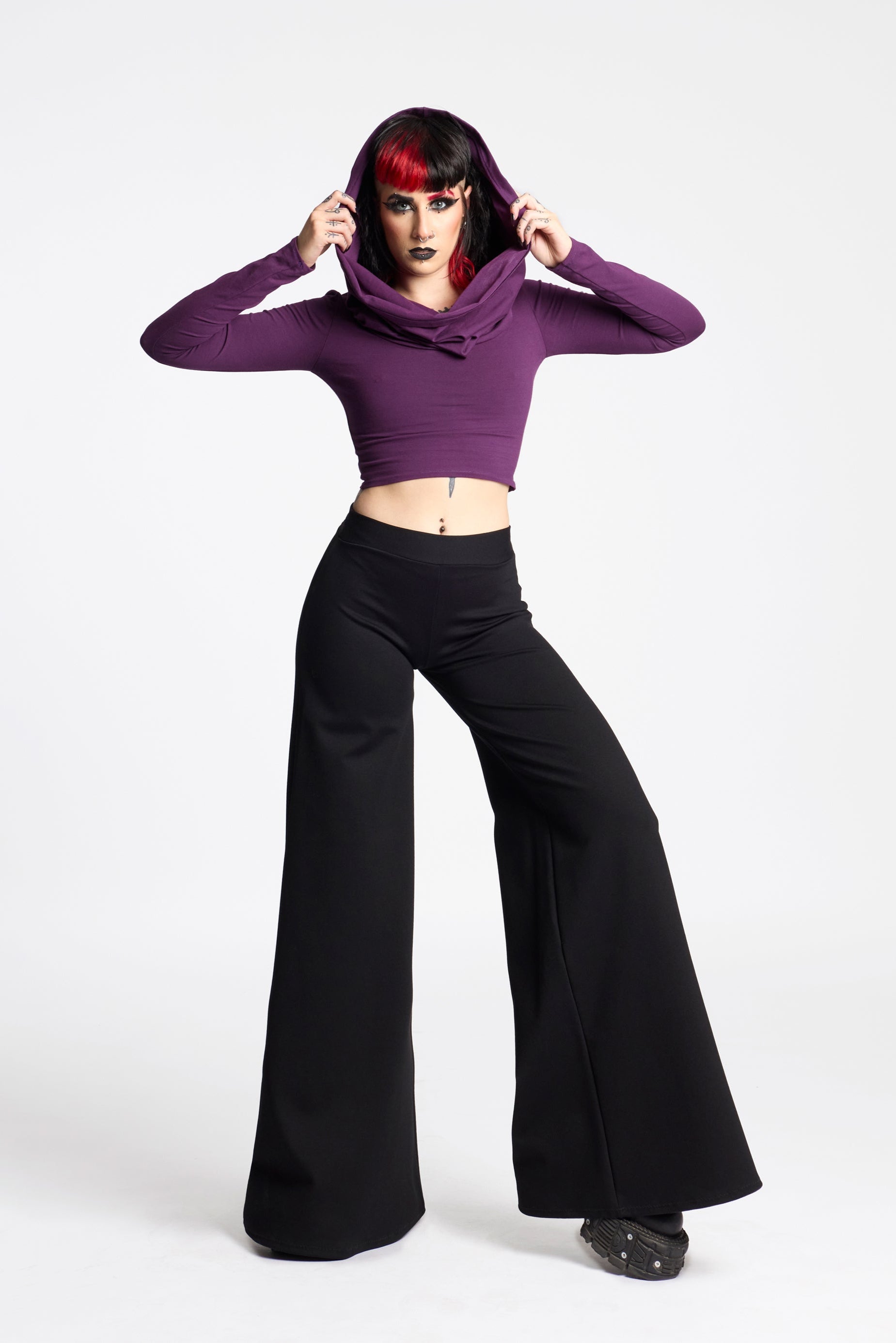 These maxi flare palazzo pants are crafted from a thick and soft ponte roma cotton jersey, offering structure, stretch, and bold movement. Designed with a dramatic wide leg and a flattering fit-and-flare silhouette, they’re ideal for dance, yoga, festivals, or everyday comfort.
