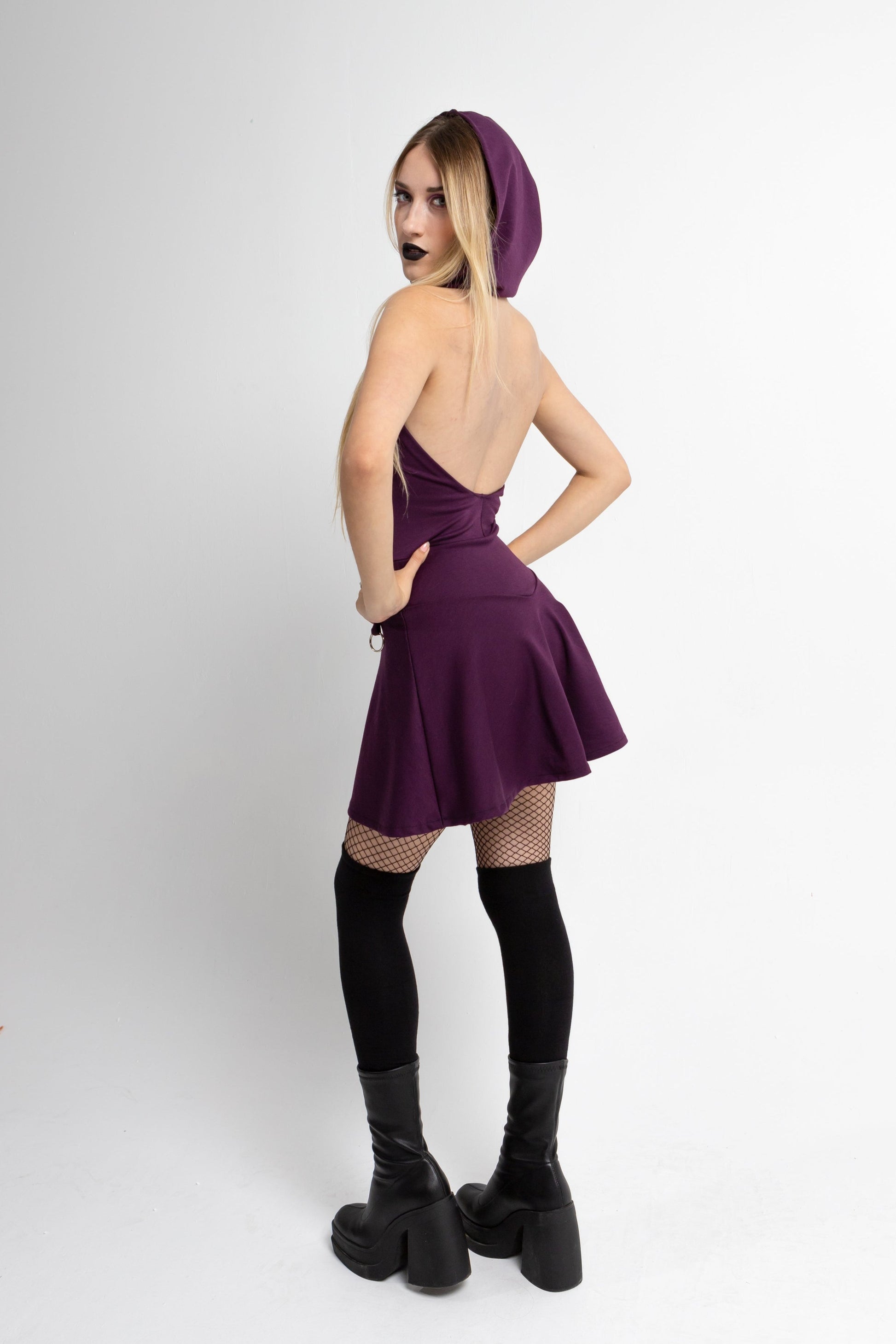 Purple Backless festival hooded mini elven dress