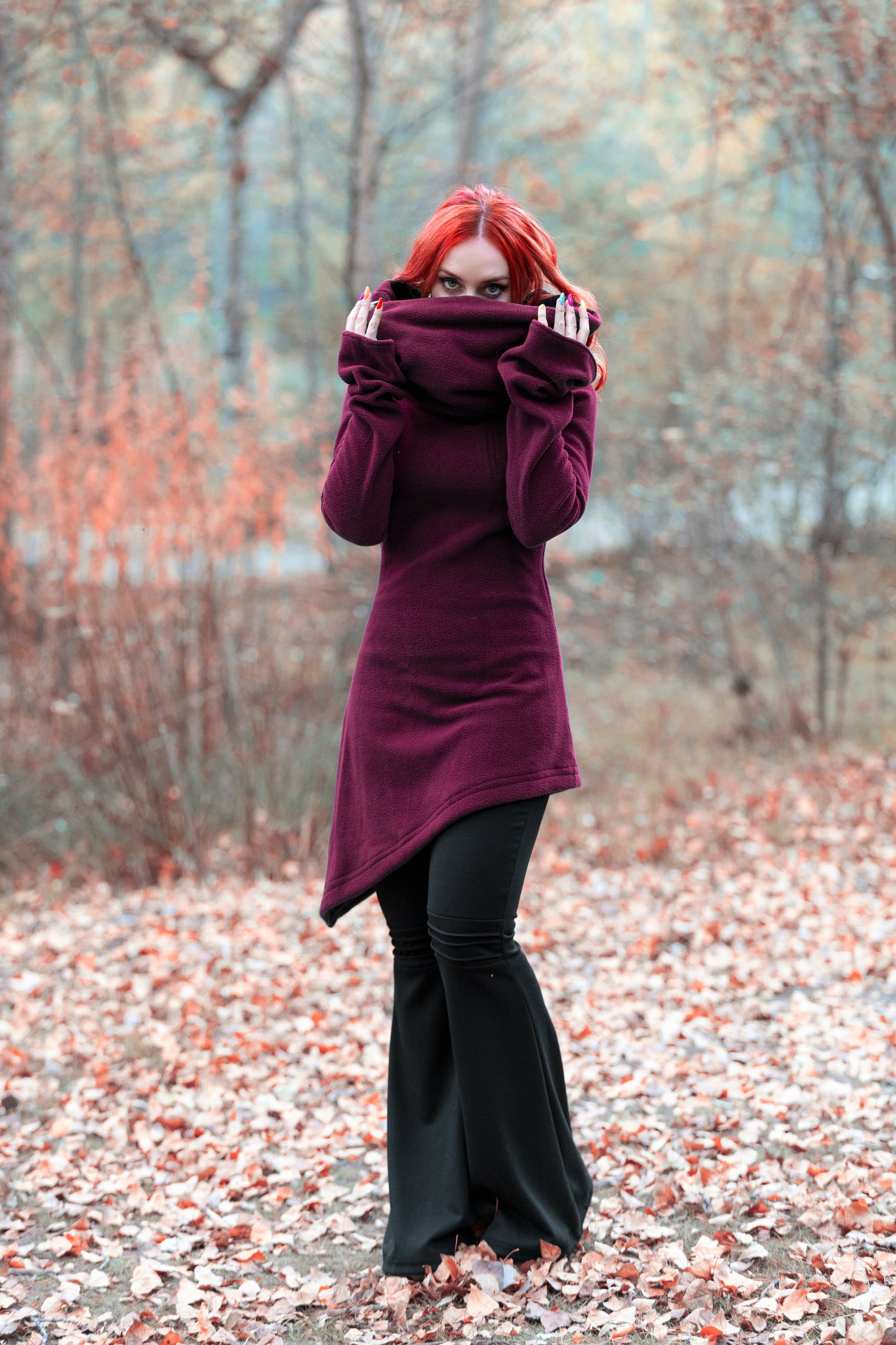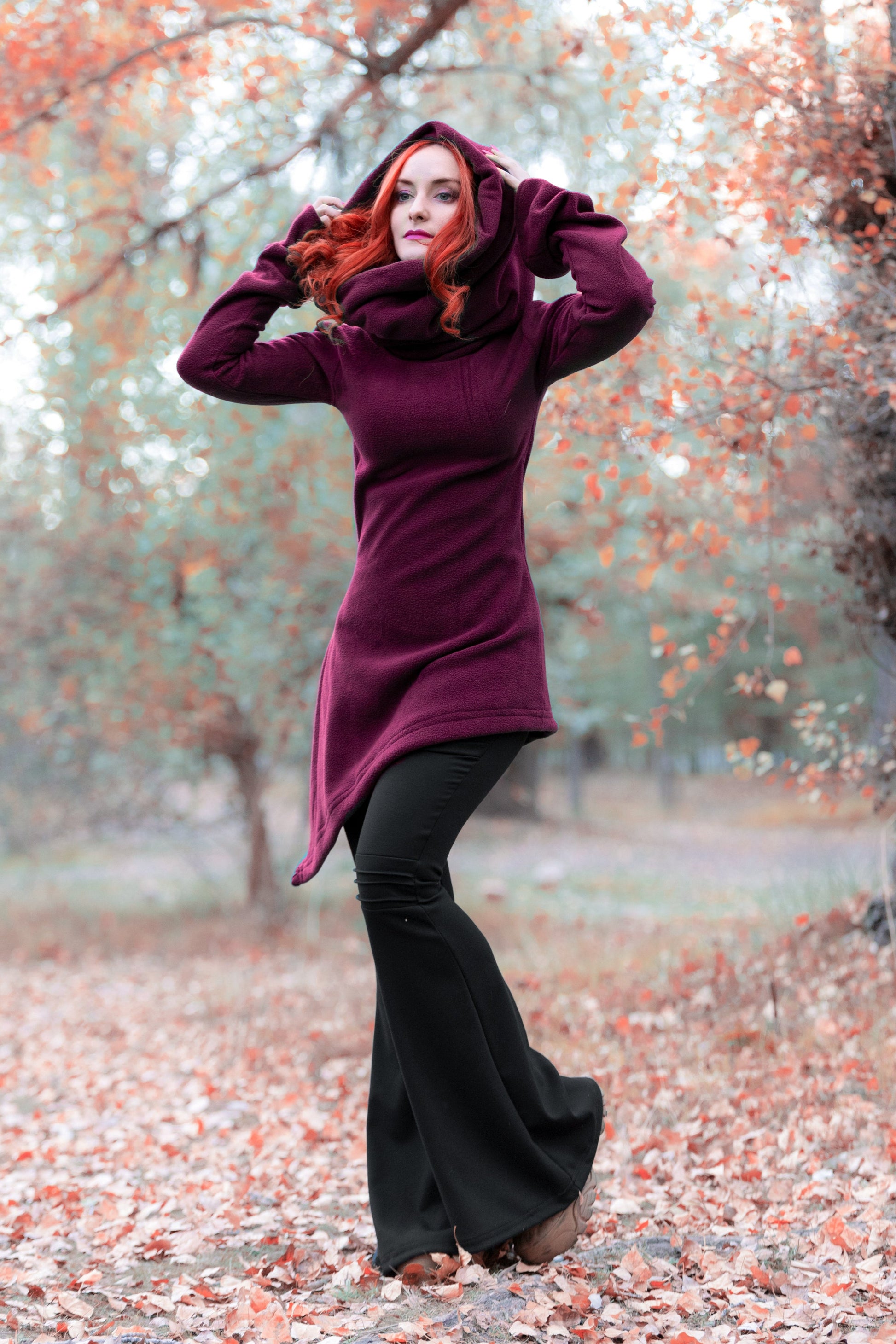 Winter Long Hooded Fleece Coat – Elven Gothic Hoodie Jacket